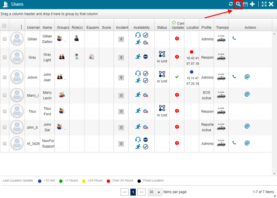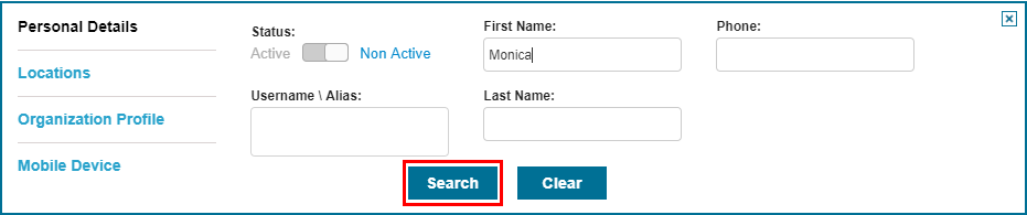 - From the Users panel, click Search.