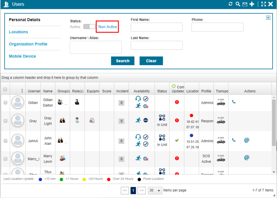 - In the Status area, select Non-Active.