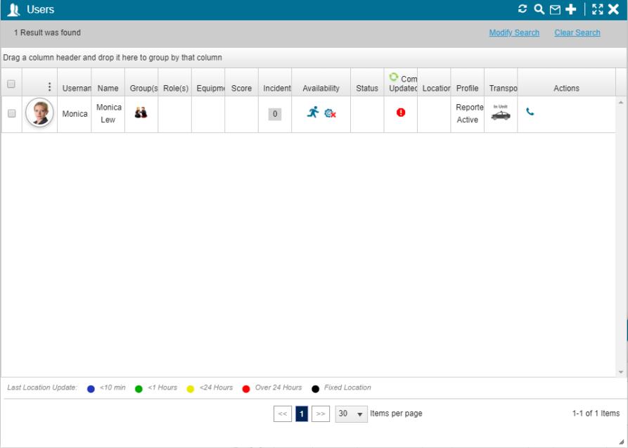 - Click Search. The Users panel shows the search results.