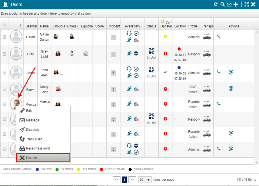 Disabling a User