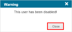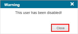 A Warning message appears asking you to confirm that you want to disable the selected user.